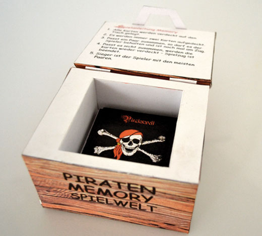 Piraten Memory SpielweltProjekt: Fotografie, Bildbearbeitung, Layout, Typografie, Druckvorbereitung, Drucken, Zusamenfertigung.